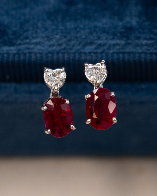 1.96 Ruby & Heart Diamond Drop Stud Earrings 18k