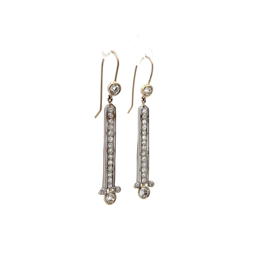 1.00 Vintage Diamond Drop Earrings in 14k White Gold