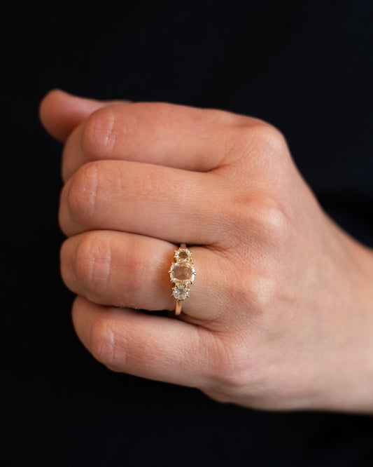 .93 Three Stone Rose Cut Diamond Engagement Ring 14k