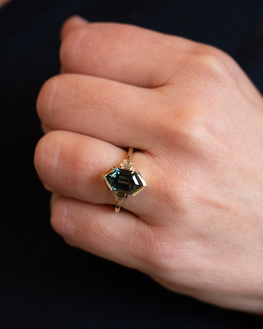 4.26 Cushion Cut Green Sapphire Engagement Ring 14k
