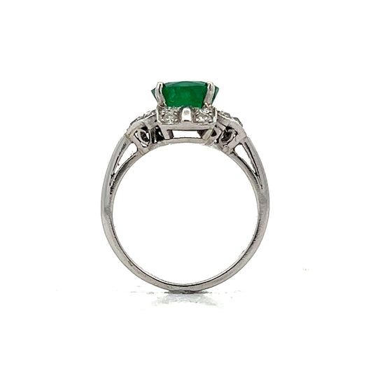 Vintage Cocktail Ring Mid-Century 1.47 Round Brilliant Cut Emerald & Diamonds in Platinum