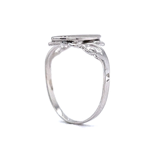 Round Brilliant Cut Diamond Signet Ring in 10k White Gold