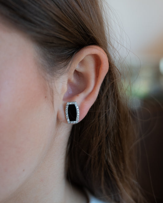 Antique Art Deco Onyx & Diamond Stud Earrings 14k