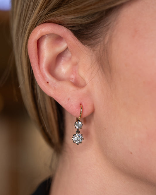 4.00 GIA Old European Diamond Drop Earrings 14k