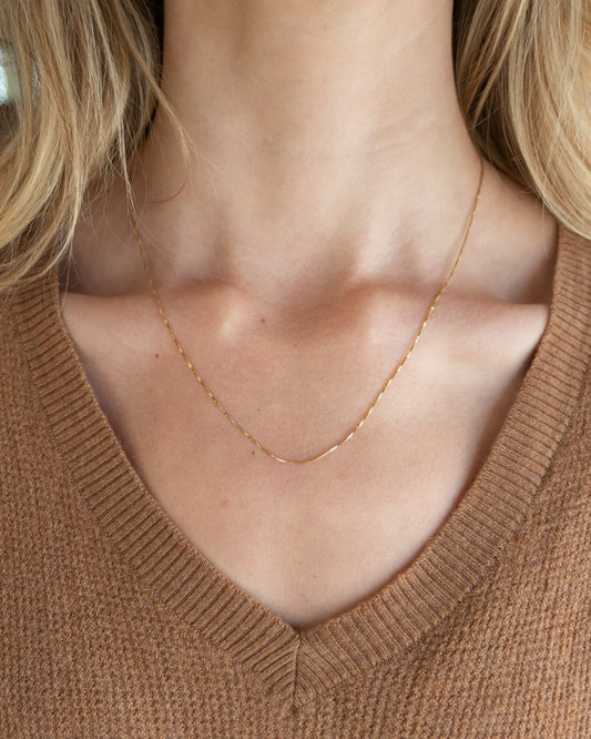 20 Inch Thin Box Chain Necklace 14k Yellow Gold