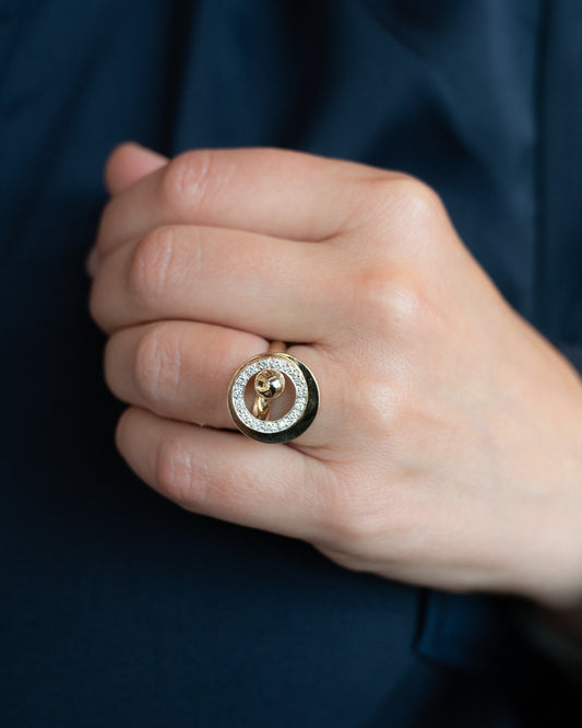 Pave Diamond Dome Cocktail Ring 18k Yellow Gold