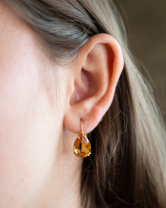 9.22 Pear Citrine Drop Earrings in 14k Yellow Gold
