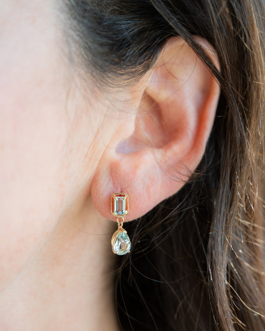 2.86 Pear & Emerald Cut Aquamarine Dangle Earrings 14k