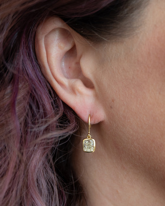 3.52 Cushion Diamond Drop Earrings 18k Yellow Gold