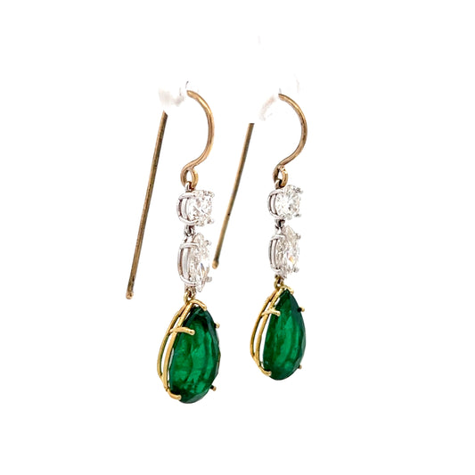 4.56 Pear Emerald & Diamond Drop Earrings in 14k