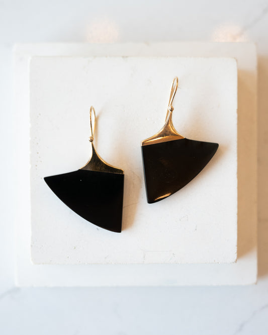 Geometric Black Onyx Dangle Earrings in 14k Yellow Gold
