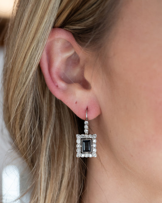 2.18 Emerald Cut Sapphire Drop Earrings 14k