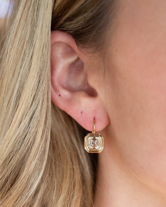 3 Carat Asscher Diamond Drop Earrings 18k Yellow Gold