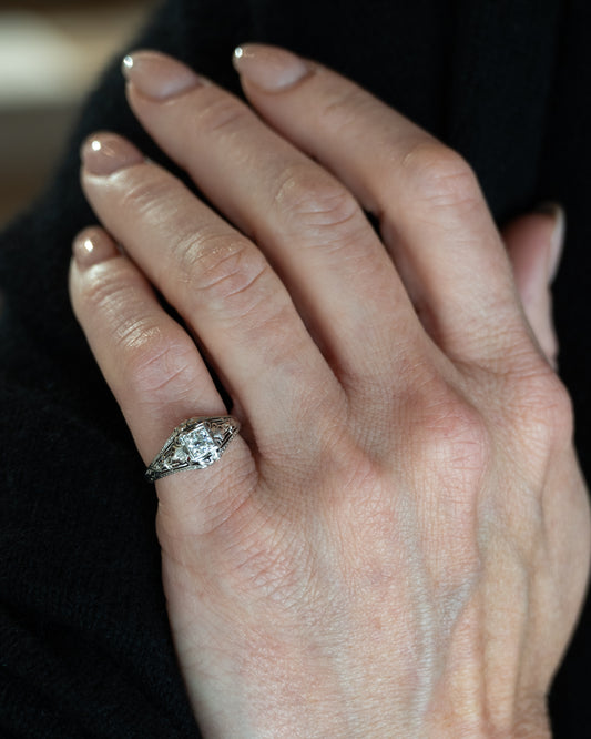 .40 Antique Art Deco Step Engagement Ring in 14k