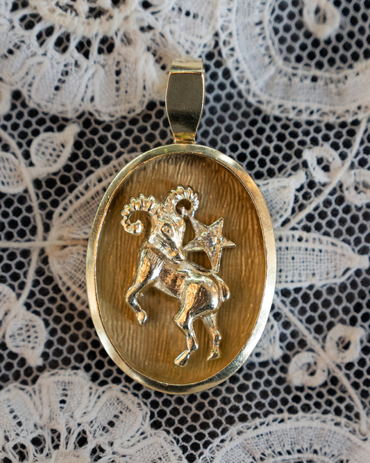 Vintage Mid-Century Ram Zodiac Pendant in 14k