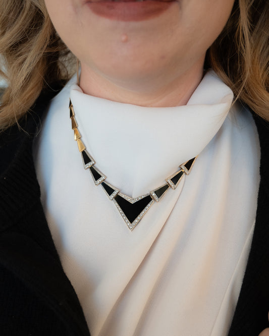 1980s Onyx Collar Statement Necklace in 14k Yellow Gold