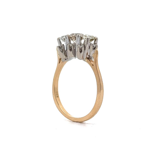 .95 Vintage Three Stone Cluster Engagement Ring in 14k Yellow & White Gold