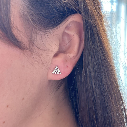 Pave Diamond Triangle Stud Earrings in 18k White Gold