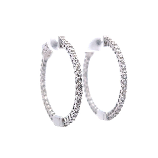 Thin Inside Out Diamond Hoop Earrings in 14k White Gold