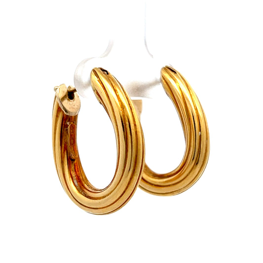 Oval Textured Hoop Earrings in 18k Yellow Gold