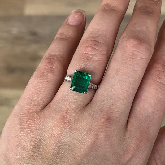 7.64 Emerald Cut Emerald & Diamond Ring in 18k White Gold