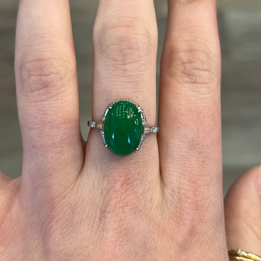 Antique Double Diamond & Emerald Cocktail Ring in Platinum