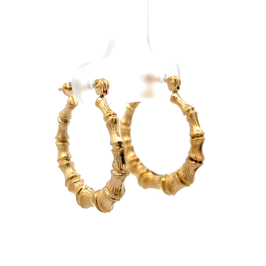 Bamboo Texture Hoop Earrings in 14k Yellow Gold