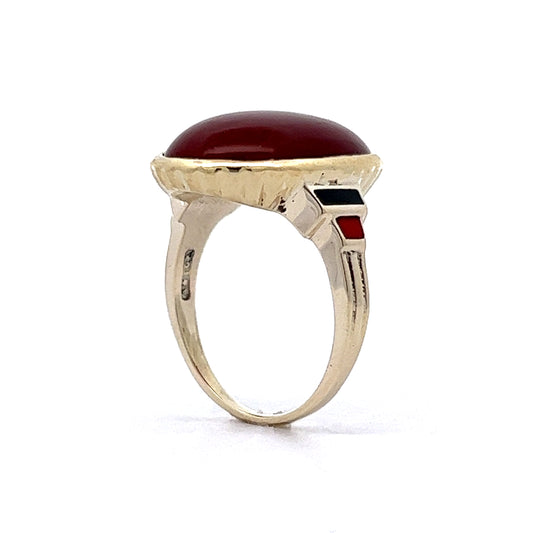 7.04 Mid-Century Red Carnelian Cocktail Ring in 10K Yellow Gold