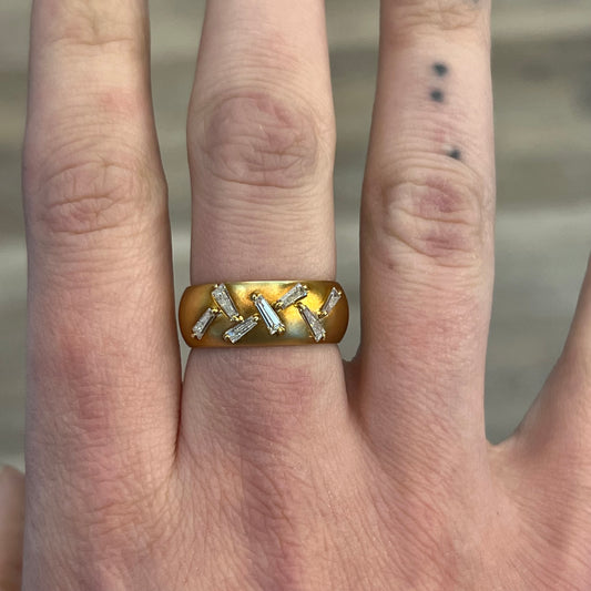 Wide Tapered Baguette Diamond Band in 18k Yellow Gold