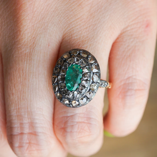 1820's Georgian Emerald Ring in Silver & 14k Yellow Gold