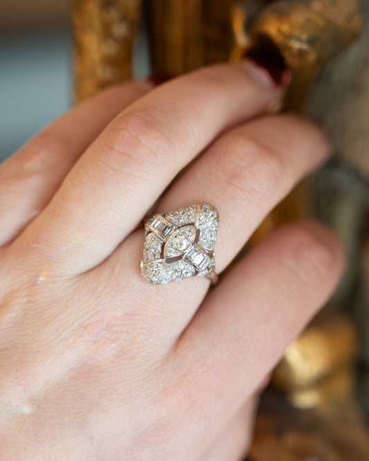 .30 Antique Diamond Deco Dinner Ring in 14k White Gold