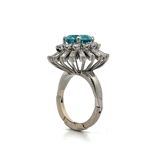 3.54 Blue Zircon Flower Cocktail Ring in Platinum
