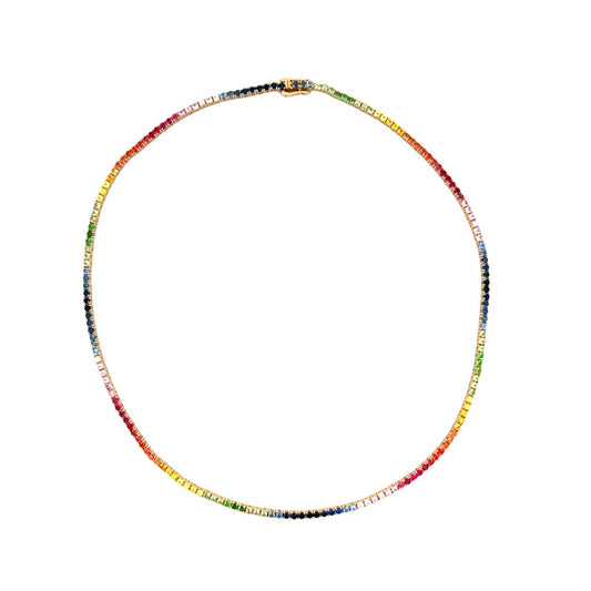 10.46 Rainbow Sapphire Necklace in 14k Yellow Gold