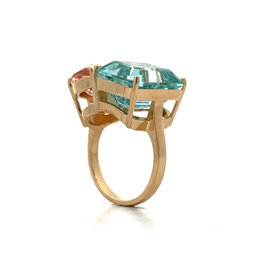 Aquamarine & Morganite Statement Ring in 14k Yellow Gold