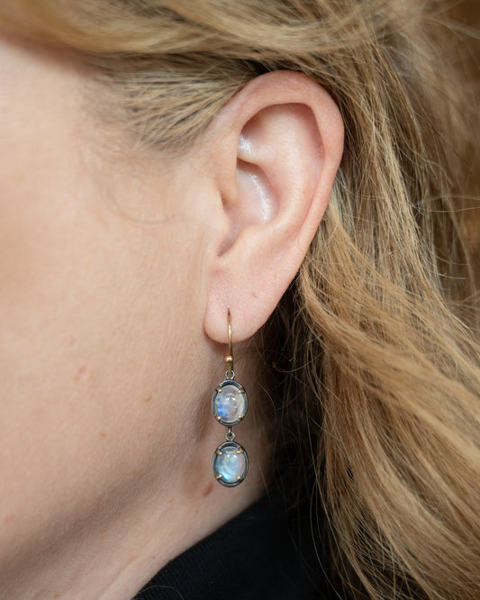 4.88 Cabochon Moonstone Earrings in 14k Yellow Gold