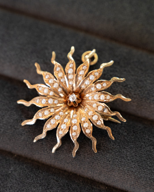 Antique Victorian Diamond Sunburst Pendant in 14k