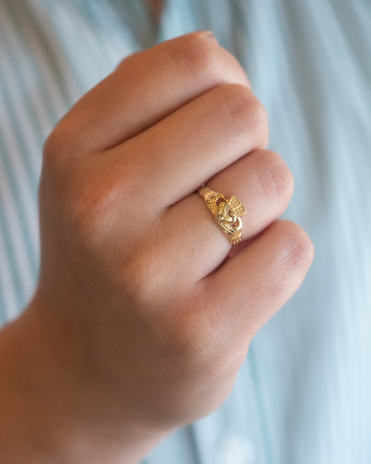 Irish Heart Claddagh Cocktail Ring in 14k Yellow Gold
