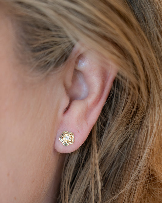.07 Diamond Floral Stud Earrings in 14k Yellow Gold