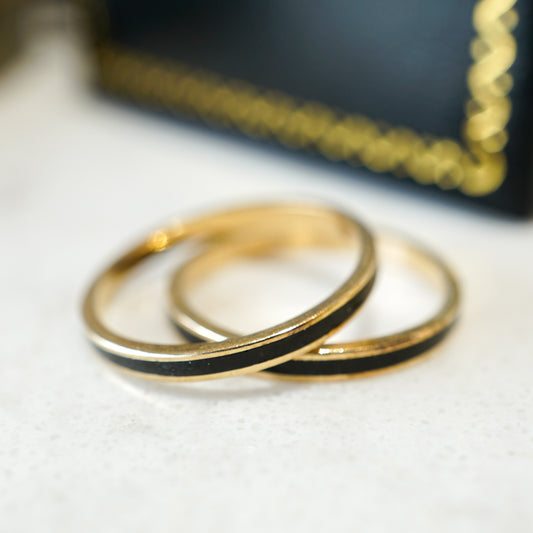 .06 Open Diamond & Enamel Stacking Ring in Yellow Gold
