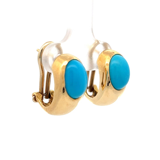 Oval Cabochon Turquoise Stud Earrings in 18k Yellow Gold