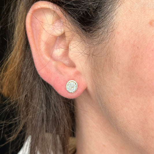 Round Pave Diamond Earring Studs in 18k White Gold