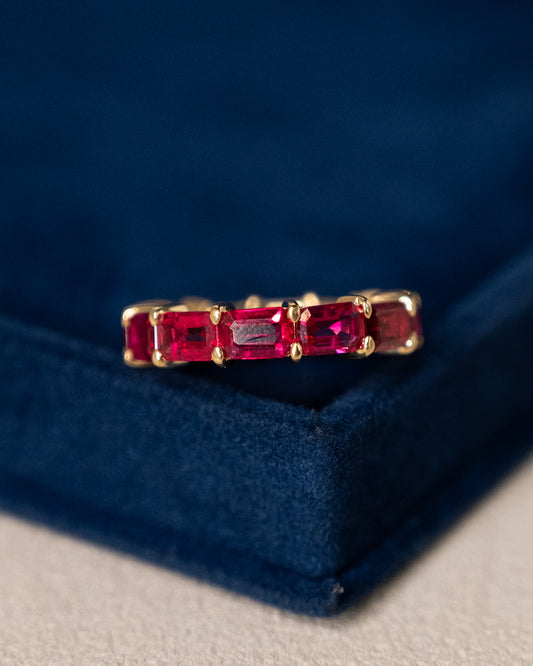 9.20 Emerald Cut Ruby Eternity Band 18k Yellow Gold