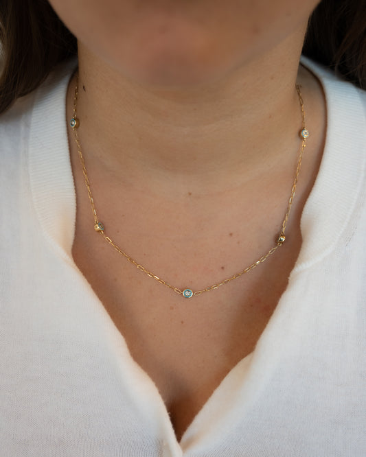 19" Lariat Cable Link Chain Necklace 18k Yellow Gold