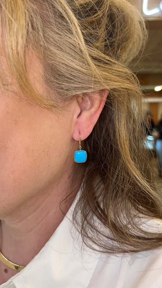 4.66 Bezel Cabochon Turquoise Hoop Earrings 14k