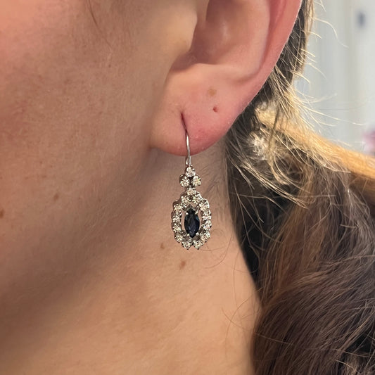 Marquise Sapphire & Diamond Cluster Earrings in 14k White Gold