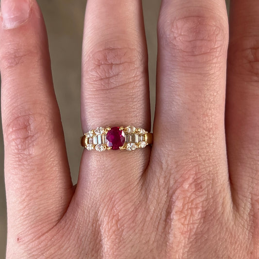 Ruby & Diamond Cluster Right Hand Ring in 18k Yellow Gold
