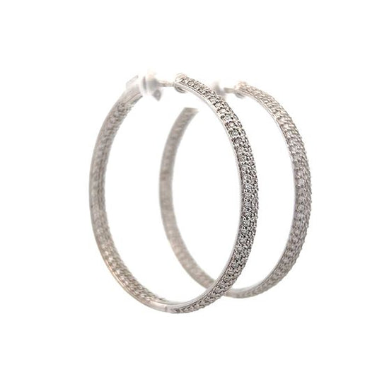 1.97 Pave Diamond Hoop Earrings in 14k White Gold