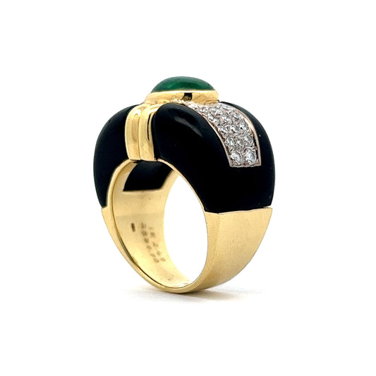 2.49 Cabochon Emerald, Onyx & Diamond Right Hand Ring in 18k Yellow Gold