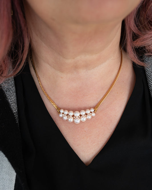.12 Pearl & Diamond Necklace in 18k Yellow Gold