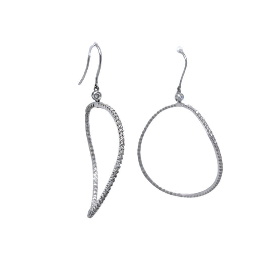 Diamond Wave Hoop Earrings in 14k White Gold